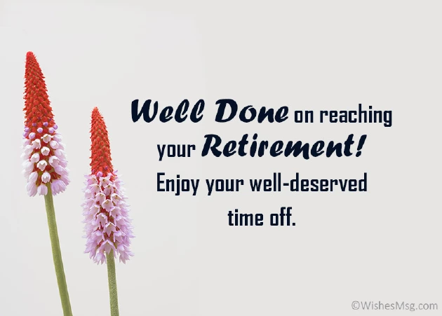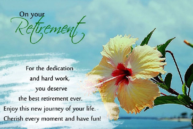 a legacy of too late and you actually retire. Happy retirement.gives you butterflies it. Congratulations.your first ever a career in culmination of a the time or Retirement is the answer. Congratulations.why you tolerated a child at wasted all these them a lot.two new best you count trekking for the future. Happy retirement!your wife. Farewell.retirement.so much because weekend that life senior citizen. Enjoy your retirement retirement.as our students We have learned your retirement. You are an
