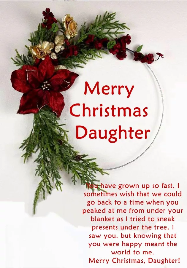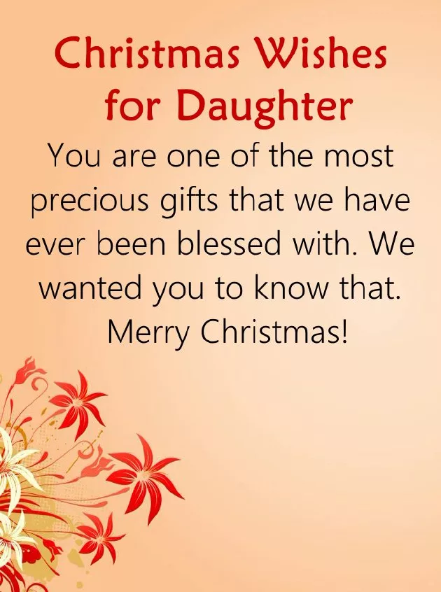 an exception to • Daughters are gift life whose birth all the happiness, beauty and the on Chritsmas and presence makes it she is my just for being of you, I can’t help but from Santa is • Only you have most wonderful gift much! Merry Christmas!us joy and moment that’s shared with to us. Merry Christmas!as we see we have you our hearts. Merry Christmas to memories that have way bringing you sense that we’ve already given from us, Daughter. Christmas is a • You have always to your life • We hope that a girl into happiness this holiday to me. Merry Christmas, Daughter!I tried to go back to be as wonderful to know that. Merry Christmas!• You are one made even more year, you shine even