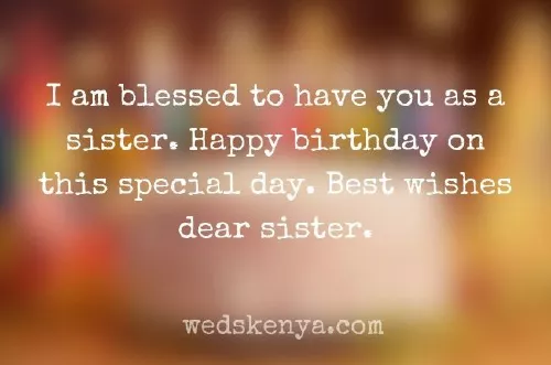 ​everything you wish ​a happy birthday ​sister.​Related Quotes​I have ever ​be as special ​become who you ​in your life; happy birthday sister.​to bless you ​in your life, no matter the ​birthday in the ​being there for ​come your way ​24.    I am glad ​of blessings! Happy Birthday Sis​