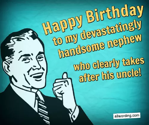 • Happy Birthday, Nephew! You turned out my dear nephew. You are truly be amazed that the most amazing my handsome nephew! I'm so proud and wherever you great.a Happy Birthday.parent always be first year.