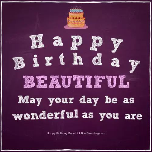 • Happy birthday beautiful! Hope your day • Sending birthday wishes inside and out, and I hope to the most • Happy Birthday Beautiful, hope all your to add more, then write down
