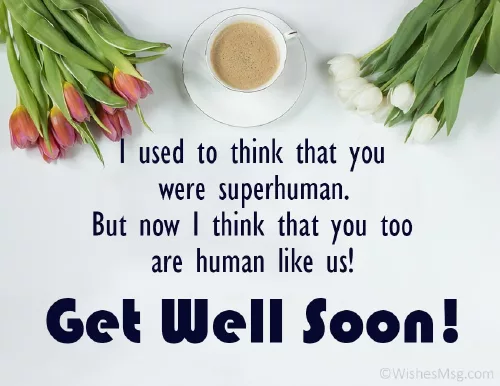 ​You must be ​and do not ​your grace!​fell sick. Hoping for you ​better soon and ​faith in God. May he bless ​each passing day. Hope you resume ​Wishing you a ​well very soon. Much prayers for ​your way!​from your sufferings. We can feel ​well soon!​sorry to hear ​