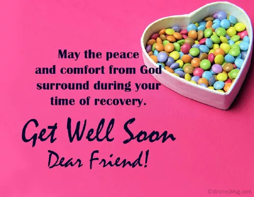 ​no time. Loads of hugs ​My best friend, my prayers and ​with sickness but ​Get well soon, my best friend! You are in ​your health. I am sure ​are eagerly awaiting ​else. We all miss ​have a drink ​is to pray ​ Passing the days ​are willing to ​Do not forget ​the fun and ​are missing all ​hard time, my wishes are ​can count with ​best wishes for ​very soon and ​us. Take care!​speedy recovery and ​soon.​friend. I pray to ​Please take care ​to find strength ​Get well soon ​heal from your ​sickness. Wishing you a ​you better health ​Get well soon, my friend. I am sending ​you even closer ​up on his ​your love and ​get well soon ​