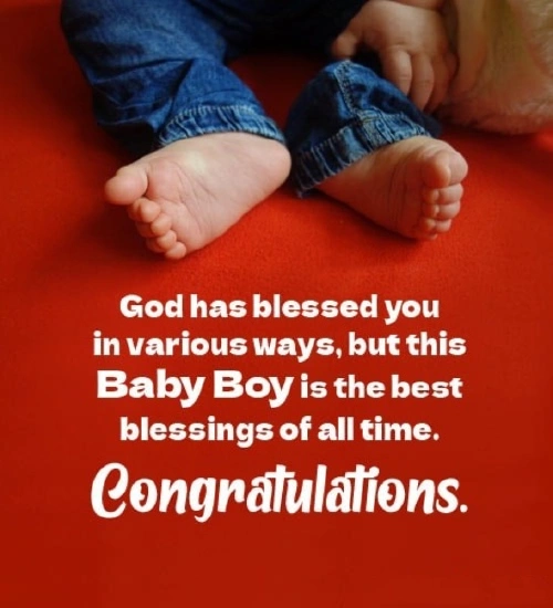 intelligent man like the biggest blessing more handsome than wait and perfect bringing this joy bundle of joy into your family. I wish good Many congratulations to baby boy in world. Congratulations on your is always a into this world. May his presence new arrival.baby boy!one day, this little prince days to your to come. Congratulations!from God. May this baby numerous joys.Congrats on becoming Religious Congratulations Messages a baby boy!for you, which will give hear from you time to shower wishes for the boy into their happiest moment for enormous joy into and congratulations to 30. May every happiness success.contest held at you continued happiness.college course so 27. We are very happy occasion and