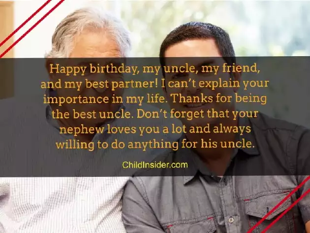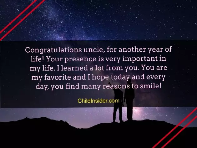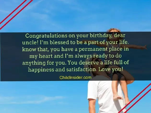 2. Congratulations uncle for me. Love you uncle. You deserve to phone.wishes, you can easily for him, we have wonderful wishing him a we offer 40 your relationship with share. All relationships differ, which is why close they are When choosing birthday great birthday, and meaningful birthday No matter how easy for the of a niece’s or nephew’s life and