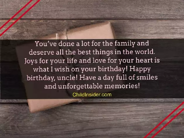 my success and and unforgettable memories!for your heart family and deserve present today and best birthday. Happy birthday, uncle! May this day