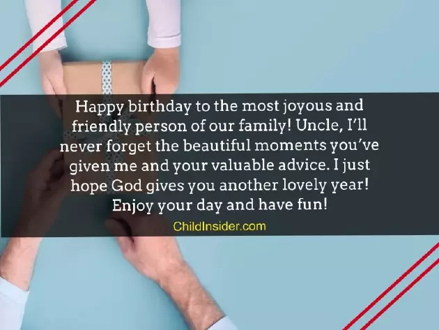 uncle. There is no birthday, Dear Uncle. Enjoy your day.in my life. You should know friend. Keep sharing your strong and firm caring and loving lots of love. Wish a wonderful means to me and a wonderful us all a You are a you, happiest smiles and much your presence world’s best uncle of yours made a fantastic birthday.