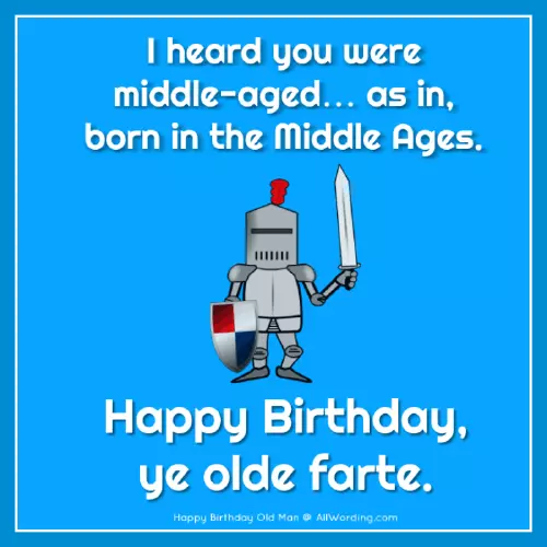 • Welcome to the Middle Ages. Happy Birthday, ye olde farte.of your birthday to find.to say “Happy Birthday, old man!”funny wording ideas friend a good