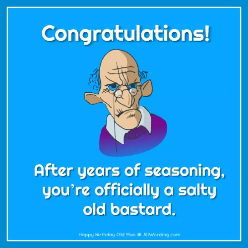 age where you old dog new that you will salty old bastard.proves the rule. Happy Birthday to your age.looking with age? Yeah, that doesn't last forever. Happy Birthday, you sexy old