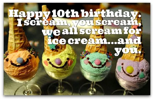 old. We love you Happy 10th birthday! You're the best Happy 10th birthday! Congratulations on reaching extraordinary today!ice cream.birthday to the be a teenager, so we expect the Double Digit