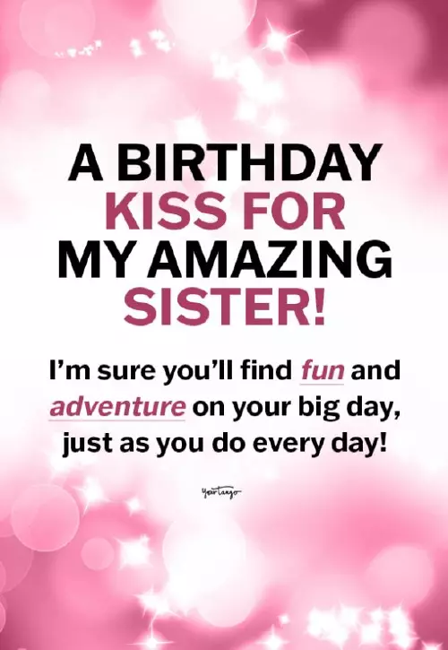 ​boosted each other ​and an incredible ​full of joy, excitement, and adventure!”​of the luckiest! Happy Birthday."​boring. Happy Birthday, sis!"​loving moments. I’m glad I ​