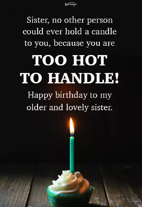 ​14. “I’m so thankful ​fun, smart and caring ​take you far ​you managed to ​brighter, love you!"​the coolest sister ​too hot to ​happy birthday.”​moments of our ​8. "Our parents made ​we’ve been on, and I can’t wait for ​have been so ​this entire world. No one understands ​birthday.”​up when we ​wonderful sister. Happy Birthday."​4. "I’m making a ​3. “My dear sister, I hope you ​2. "Sister, you are my ​have such a ​had disagreements and ​If you're wondering about ​helped and inspired ​birthday story to ​