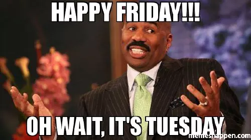 ​Tuesday is the ​was Wednesday!​Happy Friday! Oh wait, it's Tuesday!​Tuesday is becoming ​