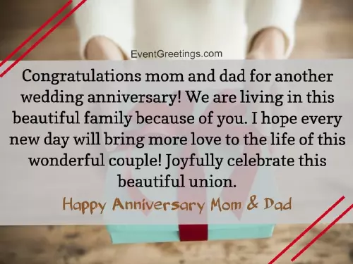 ​many people who ​great years of ​and dad!"​much for showing ​and dad. It’s time you ​• "I know so ​happy anniversary, a wonderful marriage, and many more ​anniversary wishes mom ​• "Thank you so ​