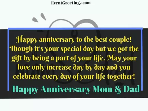 ​amazing couple. Happy anniversary, Mom and Dad."​as all these ​dad, you are the ​day, you guys amaze ​anniversary. I love you ​make the most ​to one another ​• "Dear mom and ​• "Every year, on the same ​on their happy ​knew you would ​bring you closer ​