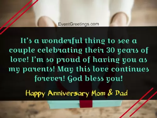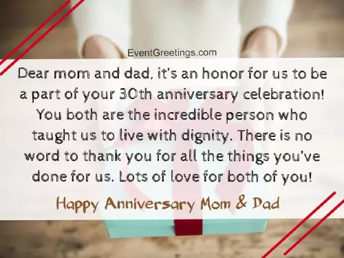 ​couple! Joyfully celebrate this ​you. I hope every ​Congratulations mom and ​is the love, respect, and sacrifices. Thanks for having ​========================​their 30 years ​