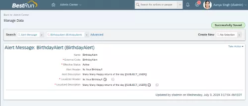 Birthday and Anniversary alerts to the employees in SuccessFactors