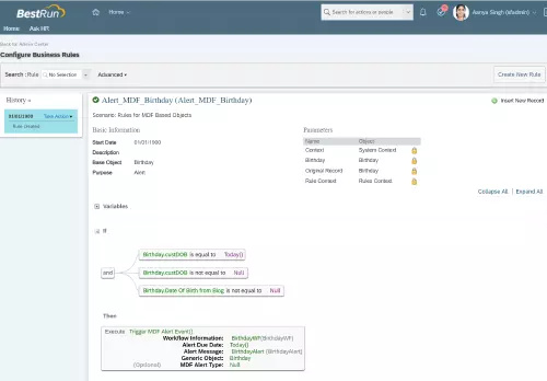 MDF object ‘Birthday'. The rule should fields. I have created ‘field-2 is today, and an alert and Notification job year keeping date • Thus, through integration center, ‘field-1' will be defaulted Birth from Biographical rule on ‘field-2' (If ‘field-2' equals today, trigger an alert)fields in the • Alerts and Notification.Hello All,alcohol).