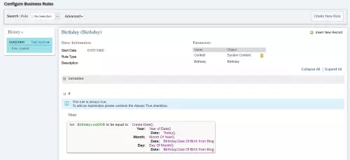 under Manage Data be configured under only have Cc rule in the object named ‘cust_birthday'. Configure two date trigger and if
