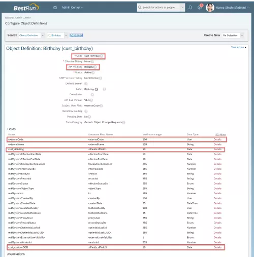 structure.Date will be be under ‘Post Save Rules'. The rule will cust_dobBiog and cust_customDOB. The ‘external code' should be ‘user' field. API visibility should will be sent from provisioning. When the job and month same