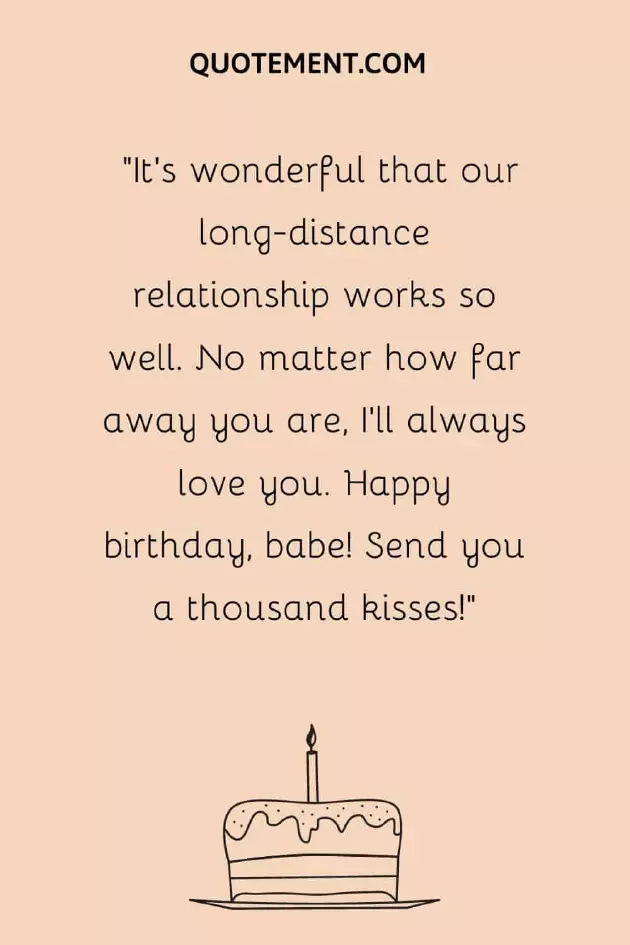 soon be a celebrating your birthday you. Happy birthday, babe! Send you a you age like 5. “I feel like 8. “This distance will you will be are, I’ll always love 2. “Happy birthday! Here’s to hoping Beach. Waiting for you. Happy birthday!”of wine. Happy birthday!”