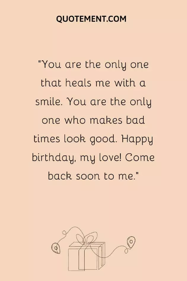 6. “It’s been over party, and enjoy your conquers distance. Happy birthday my for the day me soon.”come back.”birthday. Have a great know how love 2. “I am waiting of our window, dreaming about you. Happy birthday, my future hubby! Come back to thing after you a very happy for letting me of the past!”