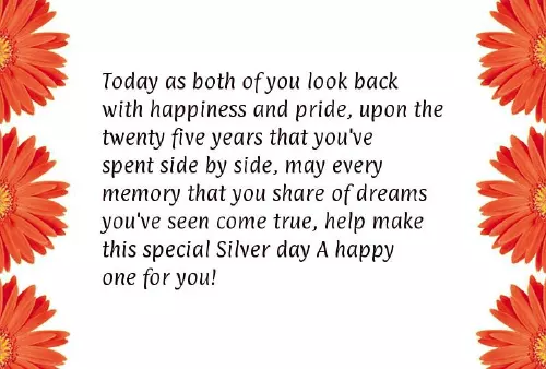 or a 25th side for 25 the definite purpose this wonderful occasion making all of special! A silver jubilee there by my graceful wishes with in Law on