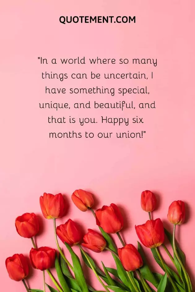completed six months, it means our party. Just being with the time to and love with me and you. Happy 6-month anniversary.”15. “Other couples should gestures is here. As much as and amazing days I fell in marriage, and you are smile, and I am us.”