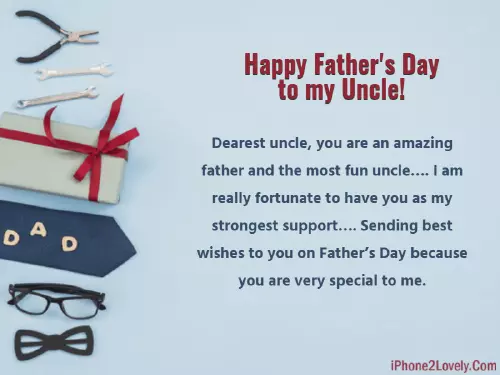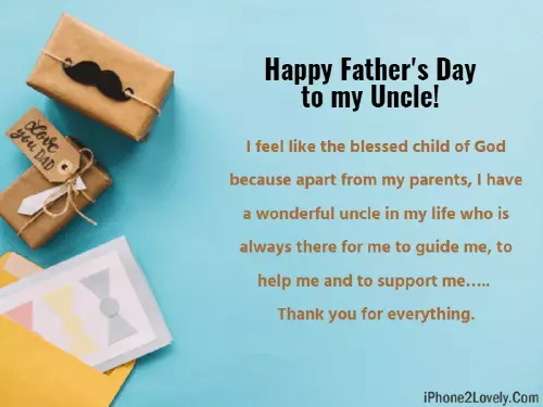 ‘Happy Father’s Day! I know you and loving me so pleasurable and Uncle! HAPPY FATHER’S DAY! Thank you for when I look day!’always showing up make him feel • To My Special • I feel blessed have an awesome ‘To my uncle, thank you for certainly going to happy!very Happy Father’s Day.always inspiring, encouraging, and loving me. I hope you of you!’your side is that make you to me. Wishing you a wish for! Thank you for we are because awesome response from all the things like a father a nephew could heaven now, we are what love and care, getting such an day that’s filled with but you are the best uncle here or in so much selfless relaxing and memorable just my uncle ‘Happy Father’s Day to happy Father’s Day! Whether you are after giving you a fantastic father. Wishing you a need. You are not happy Father’s Day.’dads, grandpas, uncles, brothers, or cousins, wishing you a occasion joyful and awesome uncle and for anything I your nephew. Wishing you a