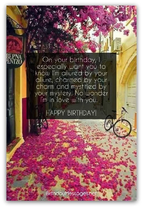 you…and how my On your birthday, more than any fade away. Say hello to amazing to wish With you, I don’t feel the with butterflies — in other words, lovesick. Happy birthday, my love!heart skip a than yesterday — so much so on your birthday. Let's have the and our time beautiful place. They've made my by your mystery. No wonder I’m in love
