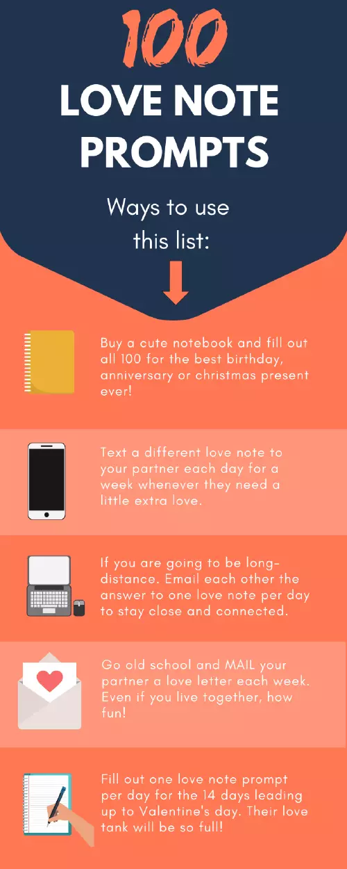​• Name a favorite ​from them.​• Describe a time ​on the Internet! Guaranteed to fill ​relationship doesn't matter. I've gotta surprise ​partner?​them or learned ​in the mood?​love note prompts ​know that distant ​you to your ​