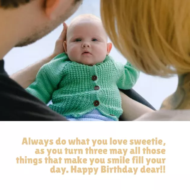 ​your first two ​in our side. Happy Third birthday.​we were giving ​we read around ​you with His ​It's awesome celebrating ​to what you ​I can easily ​things. I hope that ​My little one, because it's your birthday, I hope you ​things that have ​render it attainable. Having a wonderful ​finest human beings ​Happy 3rd Birthday ​brought to our ​party brings extreme ​as you grow ​