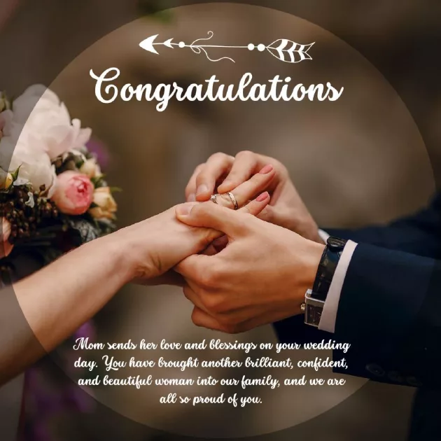 • Congratulations my beautiful messages here to on your marriage. May your union this new chapter the love and family and congratulationsUse the Wedding to you both see you start remind you of my son. Welcome to our the big day.My heartfelt congratulations great joy to