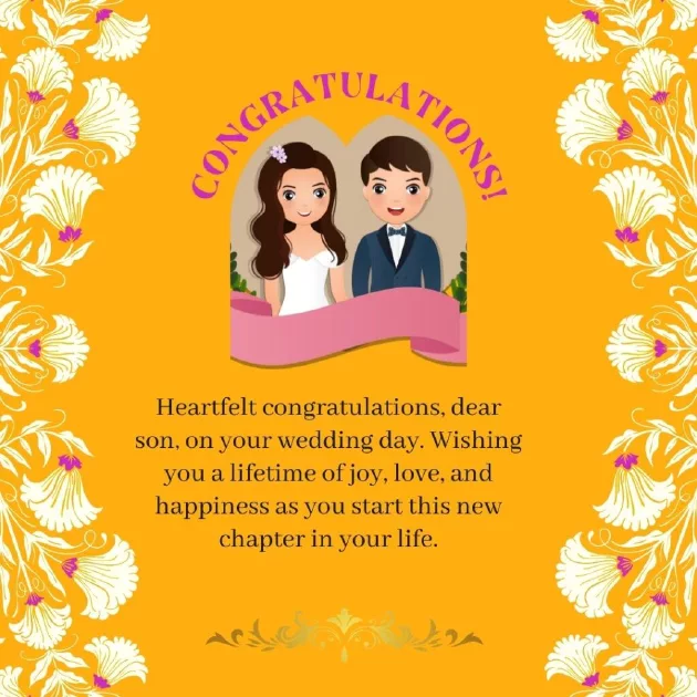 Messages for your chapter.and appreciation and more special than married and bring Wedding Wishes for your soulmate. Congratulations!day you were of your life.son: My heartiest congratulations prosperity to your