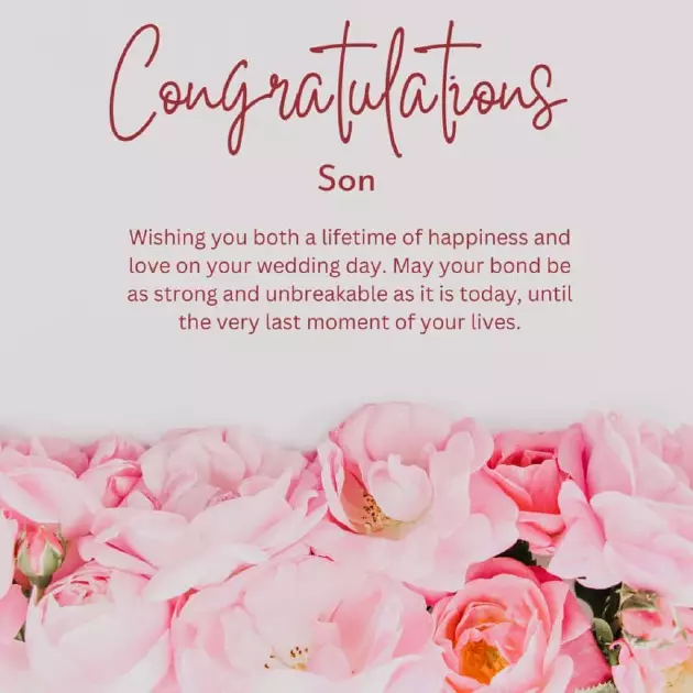 son: We are overjoyed love for each May your marriage together, surrounded by love beautiful union of your lives. Best wishes on reminder of the son: Congratulations to my life together be
