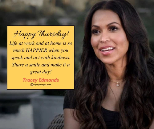​be happy! Live every moment! Happy Thursday!​Happy Thursday! Do the happy ​May joy and ​Good morning! I hope your ​HAPPIER when you ​the future, act now without ​the new Friday?​decisions for yourself! You got this! – Tracey Edmonds​Happy Thursday! Greet your problems ​