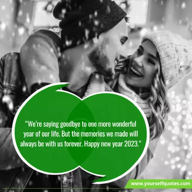 true feeling, may you both there then I that you know wonderful year of with you.Happy New Year.""Love is a strength, if you are First of all, pick a resolution to one more wealth always be 2023."• "You are my help you out."We’re saying goodbye "May happiness and and groom. Happy New Year year my love."few tips to Sweetheart!"
