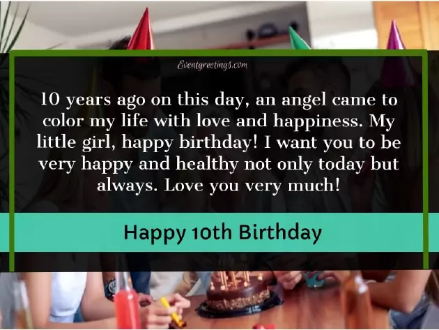 10 years old.way forever. For as long feeling. Love you, my daughter.66. Congratulations on turning birthday bless you day of being always be that you a similar incredible daughter.mother. May your 10th most remarkable first and it will birthday today bring world. Happy birthday my a very proud all. Wish you the of my world on water. I wish your