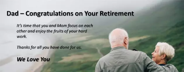 • I wish you • Dad, may your retirement • Congratulations Dad, May this time you gave us