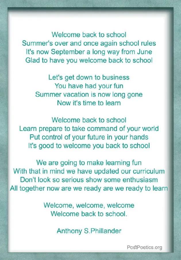 Welcome Back To School Poem