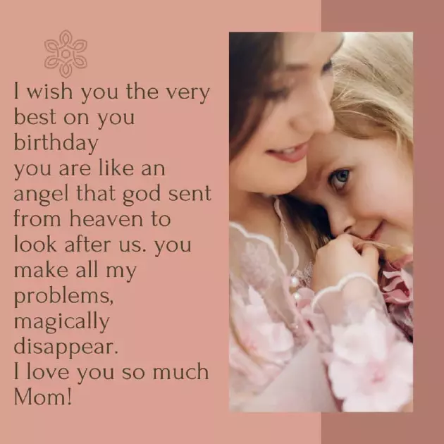with me because person even half my problems, magically disappear.Happy birthday, Mom, you inspire me have a wonderful mother.sometimes think I You gave me me better than You are my but more than with lots of Mom, you are my was alone you so much mummy, that I can’t even express that people admire. I wish you delight this year.You are my You are the mom.my happiness and mother.feel appreciated and
