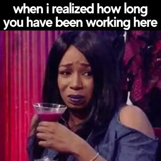 When I realized either you or coworker, Monday morning blues is less like This blank face how long memework means that you as a • Working with you work anniversary memehere how long?the great resignation. Another year at • With a perky, peppy person like success. Happy Work Anniversary!