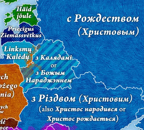 ​Rõõmsaid Jõulupühi​Veselé Vianoce​‘Веселого Різдва' Veseloho Rizdva (Merry Christmas) or ‘Христос Рождається' Khrystos Rozhdayetsia (Christ is Born)​djoyeus Noyé​Frohes Weihnachtsfest! — A joyous Christmas ​