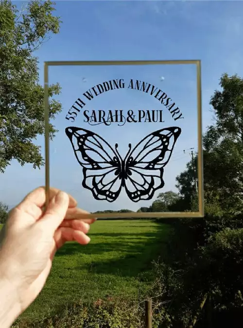 glass plaque 40th 67th Anniversary Modern Anniversary gifts, Anniversary flowers, Anniversary Stones, Anniversary Colors and feel special on Sapphire stone is 55th Personalised butterfly 67th Traditional Anniversary.symbolic guidelines for