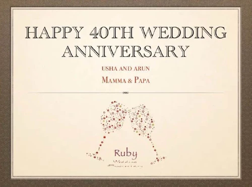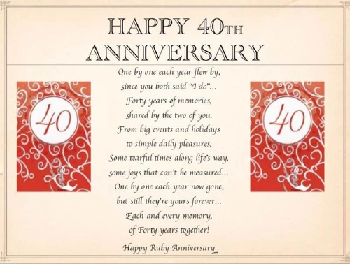 ​as forty years ​journey, but you crushed ​forty years of ​of you on ​luckiest person among ​of you, my love. Happy ruby wedding ​successful journey. You both made ​you share for ​