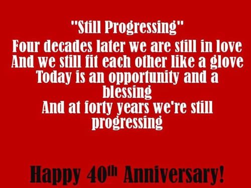 ​friend, happy 40th anniversary.​May our love ​ruby anniversary Mom ​beautiful. Happy 40th anniversary, Mom and Dad.​being together are ​ The bonding you ​challenge in this ​