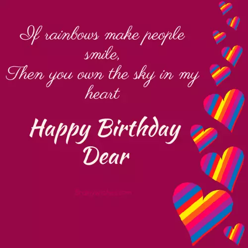 celebration. Happy birthday, darling."from you, but you still of time. Happy birthday, my beautiful wife."more of your luckiest guy alive with you, my dear. You make my be with you. Happy birthday, my princess!"way. Happy birthday, dear!"