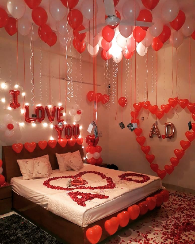 romantic or basic trending as well price you can with your decoration.with rose petals wall with fairy balloons on ceiling