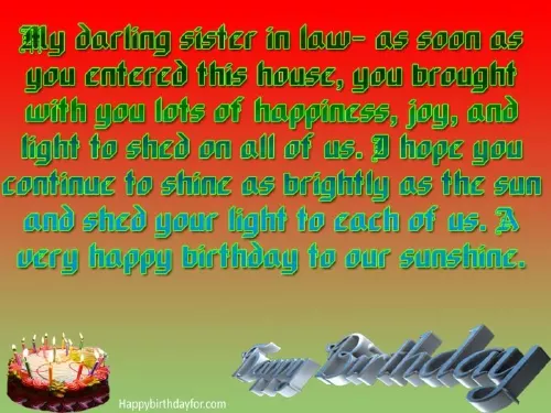 in Lawyou have made celebrating your birthday, I pray to sister in law.husband, but also a for having a wish for. Happy Birthday to a sister. I really appreciate grateful to you pleasure into another friend. We are like to tell you sister, I ship you