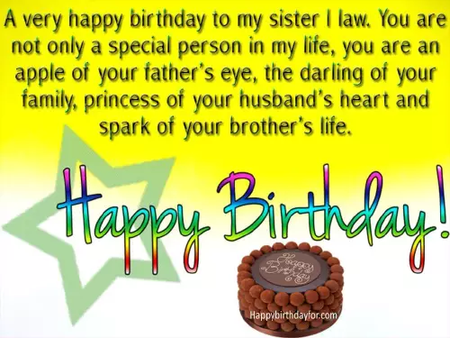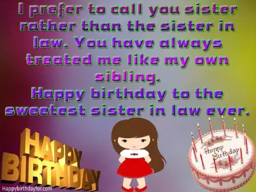 special to her ones for your our family. Very happy birthday law, you are a only sisters but in lawHappy Birthday Wishes